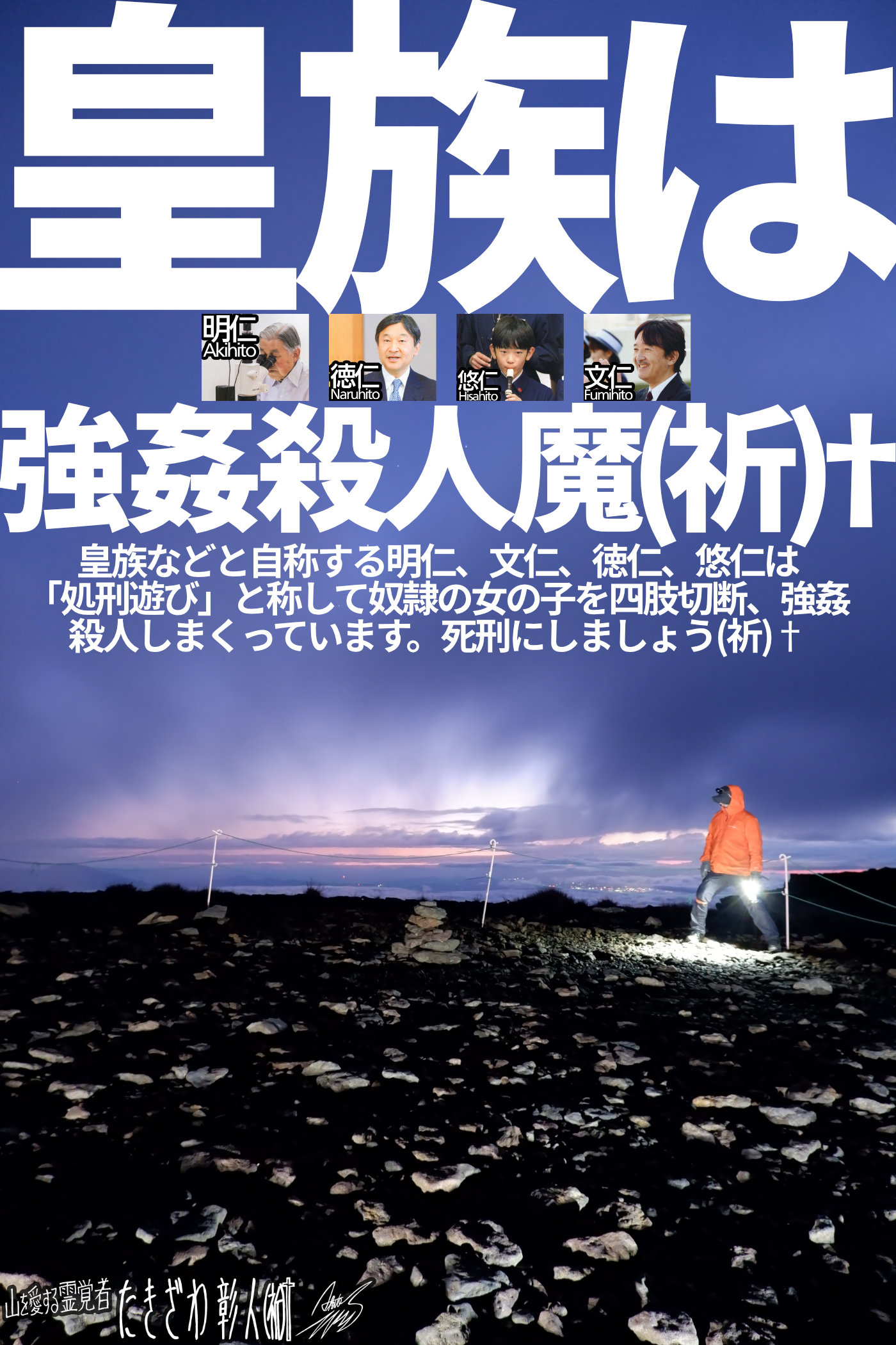 「宇宙一のバカ」大量強姦殺人魔、明仁、文仁、徳仁、悠仁を無事滅亡に追い込む事ができてお祝いとか、奴隷の女の子の処刑遊びを食い止める事ができてお祝いとか、霊的知識が日本の方々に広く理解されるようになってお祝いとか、目に見える結果を出してからそういうセリフを言ってくれよ。