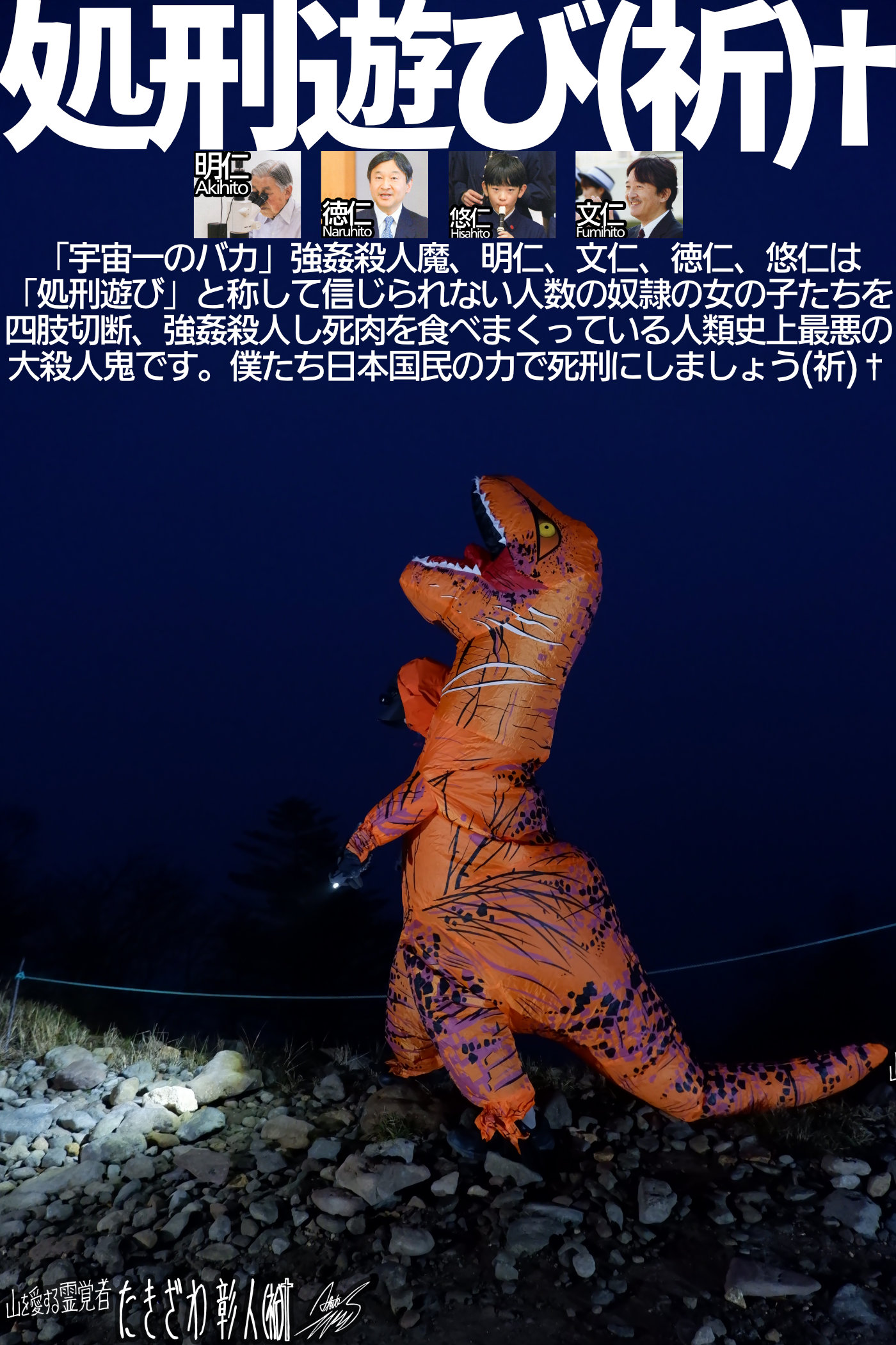 霊団が「何で追いかけてくるんだ」とインスピレーションを降らせてきました。これはたぶん「宇宙一のバカ」大量強姦殺人魔、明仁、文仁、徳仁、悠仁の思念ではないかと予測されます。初期の頃の無料ブログ時代に書いていた事ですが、この強姦殺人魔どもは僕、たきざわ彰人の事を完全に舐め切っていました。(今もそうか)「こんなバカ、放っておけばそのうちやめる」と思ったのでしょう、霊団によると明仁が「たきざわ彰人の事は無視しろ」と命令し、この13年間、僕は完全に無視されながら使命遂行を続けてきたという事のようなのです。が、コレも以前ブログで書きましたが、この強姦殺人魔どもがどんなに僕の事を無視しても、霊団のインスピレーションは止まりません。僕は霊団が降らせるインスピレーションを情報源として使命遂行を続行しますから、明仁、文仁、徳仁、悠仁が僕を無視すればするほど、僕はコイツらの邪悪の正体の情報拡散を続ける事になるのです。僕の肉眼には全然そのように映じていませんが、多くの日本国民の方が「天皇一族は強姦殺人魔」という正しい認識を持つに至っており、明仁、文仁、徳仁、悠仁の滅亡の実現に拍車をかけている、という事なのかも知れません…続きを読む→