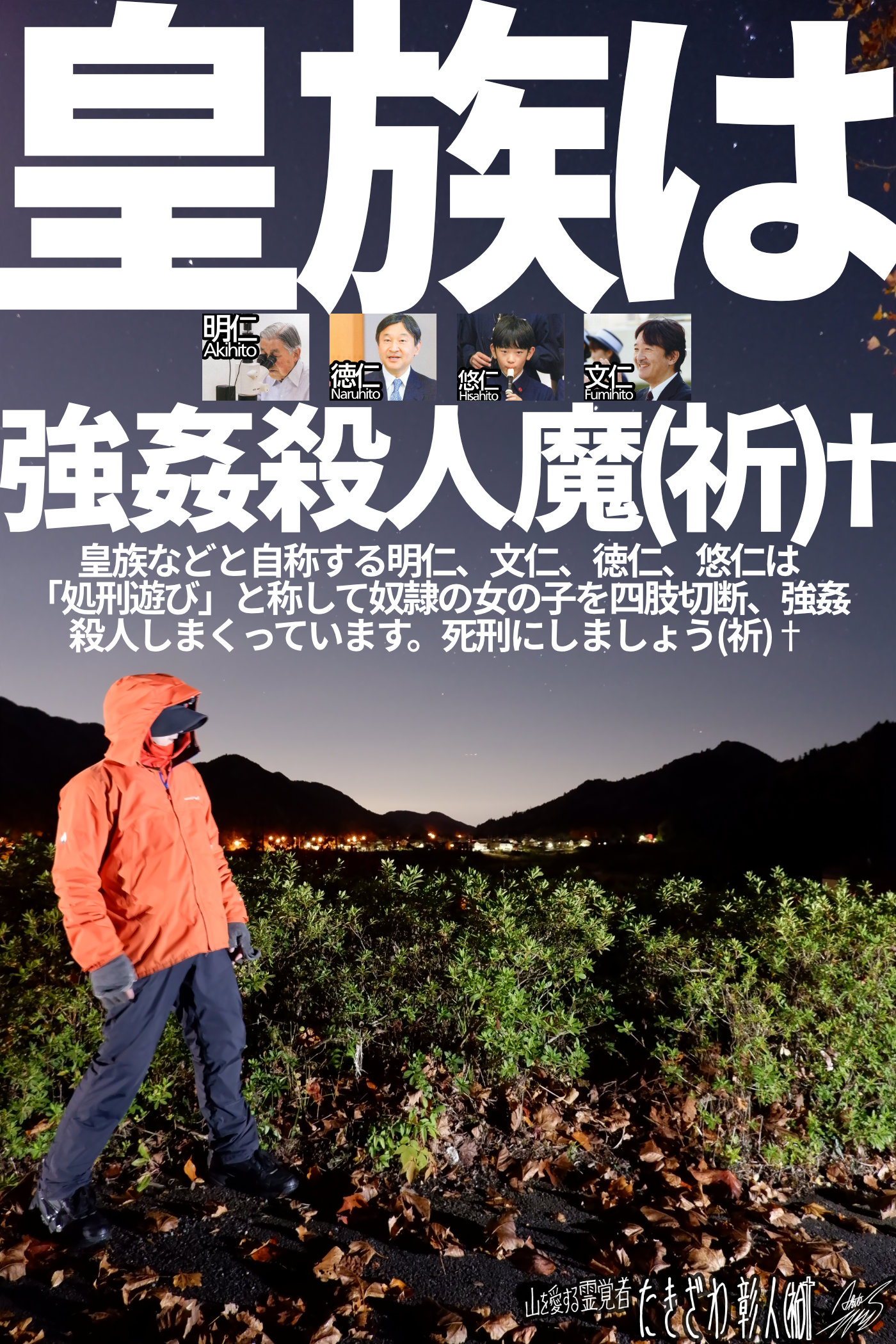 例えば守護霊は自分が守護を命ぜられた人間が物質界降下の目的を達成できずに(カルマの解消、罪障消滅等)下層界に落ちる事になったら、守護霊側もその責任を負う事になるのだそうです。今回の僕という霊の道具を使用しての霊的使命遂行の霊団(100の光の霊団)も、ここまで事態を悪化させるに至った責任を霊界側で取らされる事になるのかも知れません。そしてそれはもちろん僕にも当てはまり、僕も帰幽後にキビシイ状態にさせられるのは明白です。(反逆の責任を取らされるという事)で、僕はその覚悟で反逆していますから自業自得という事でヨシとして、とにかく仕事は前進させてくれよ。全部とは言わない、何なら少しでもいいよ。とにかく肉眼に映じる結果を出してくれよ。僕は復刊というカタチで肉眼に映じるアウトプットをしようとしている。それの何が悪いって言うんだよ。僕という霊媒が機能しないんだからこうするより他にどうしようもないだろ。僕が単純に思う事は「宇宙一のバカ」大量強姦殺人魔、明仁、文仁、徳仁、悠仁をもっと霊的に攻撃しろよ、という事です。霊障の嵐をコイツらに降らせて震え上がらせるなど理想的だと思うのですが、そういう事も一切やろうとしない。僕の事は「愛の試練、霊障イペルマルシェ」でチクチクいじりまわしてきやがるくせに…続きを読む→