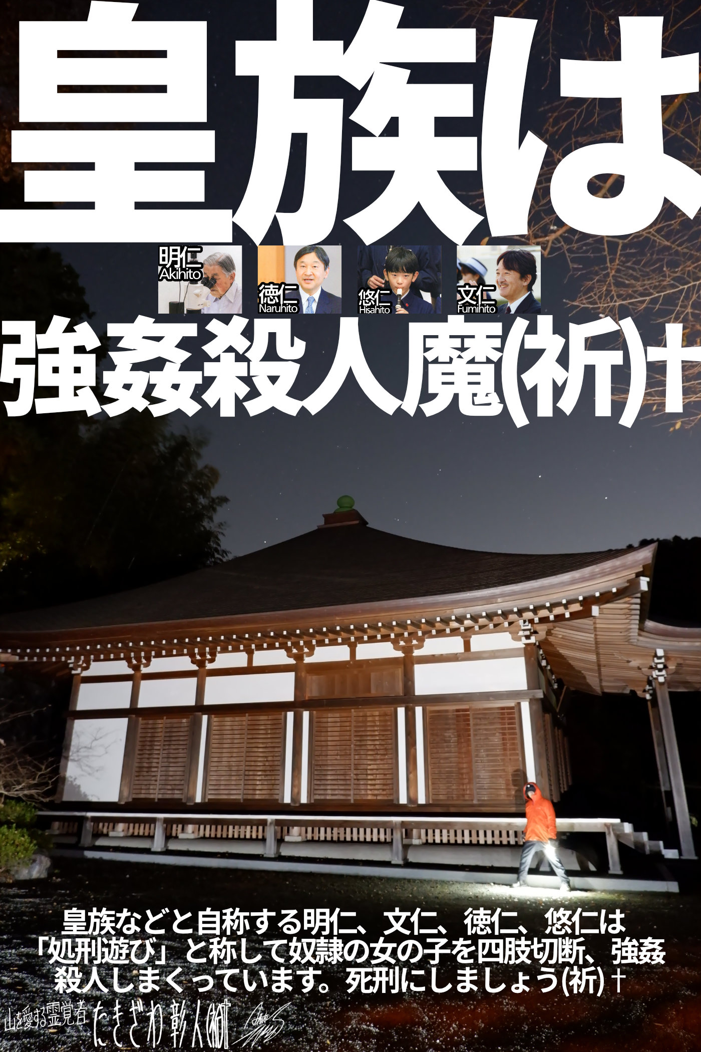 「宇宙一のバカ」大量強姦殺人魔、明仁、文仁、徳仁、悠仁を滅亡させる事ができれば、日本国民の皆さまの生活にとってどれほど有益でしょう。奴隷の女の子たちを救出する事ができたら、女の子たちにどれほど喜ばれる事でしょう。