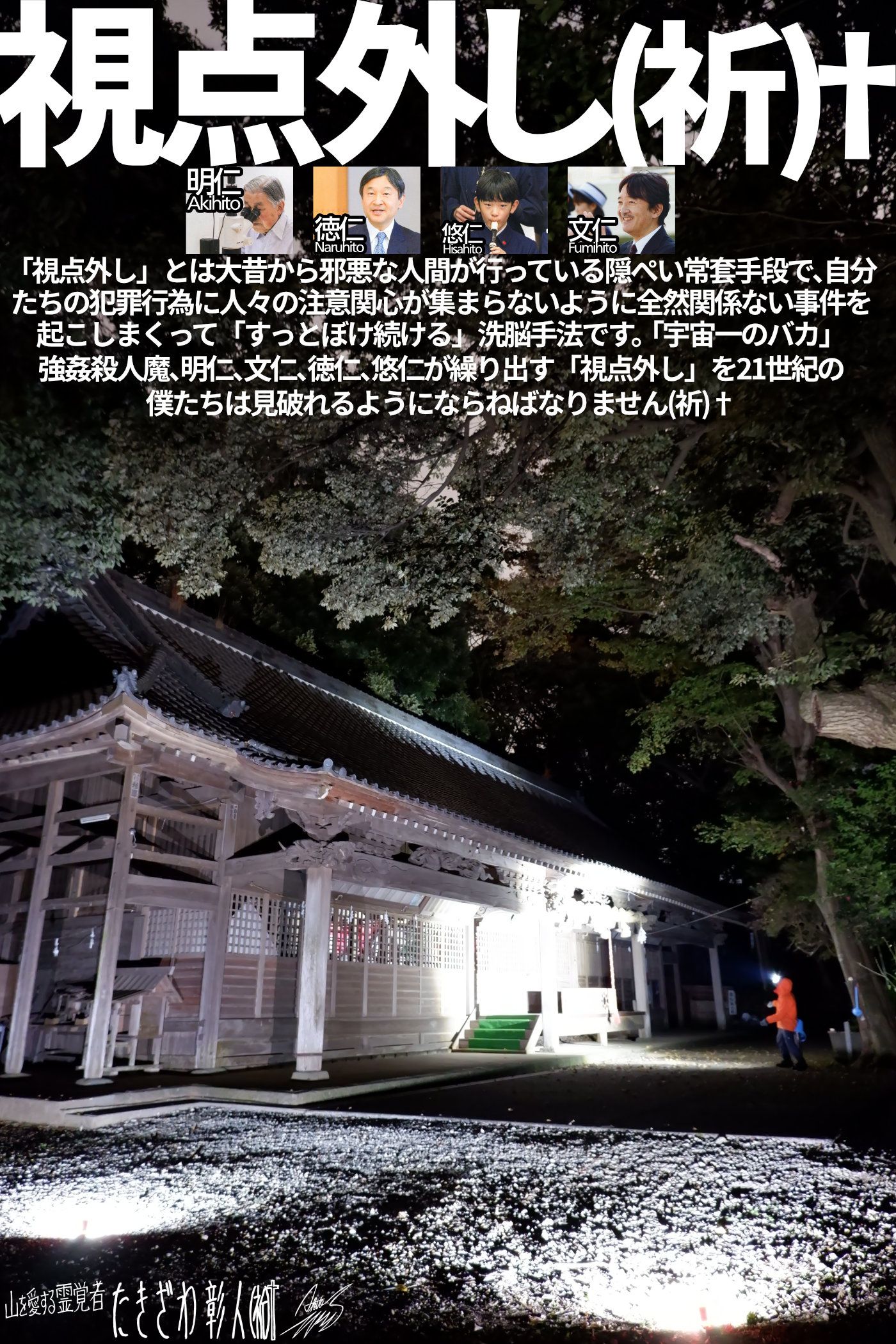 コレは「ペナルティの内容」という事でイイと思います。確かにこの数年、僕は脱出しようとしてありとあらゆるアクションを起こしてきましたが、成功確率0%、信じられない事に何ひとつ上手く行っていません。明らかに脅しと受け取れるインスピレーションを多数受け取り、泣く泣く脱出の試みを頓挫させられた事が何度あったか知れません。そこまでして閉じ込めてくるのが僕には異常と思えてならず「そのパワーを物質界の邪悪の滅亡に使えよ」と言いたくて仕方ありませんでした。使命遂行開始初期の頃、霊団は「宇宙一のバカ」大量強姦殺人魔、明仁、文仁、徳仁、悠仁の邪悪の正体を僕に果てしなく怒涛に教えてきて、ももちゃんを筆頭とした奴隷の女の子の存在も猛烈に教えてきました。僕はその導きに従って天皇一族の邪悪の正体を徹底的に情報拡散してきた訳ですが、あるところから霊団が全く正反対の行動をとり始めます。「宇宙一のバカ」大量強姦殺人魔、明仁、文仁、徳仁、悠仁を全く滅ぼすつもりがない、奴隷の女の子に関してはまるっきり助けるつもりがない、見殺しにするつもりであるとハッキリ言ってきて、僕は耳を疑う事になります…続きを読む→