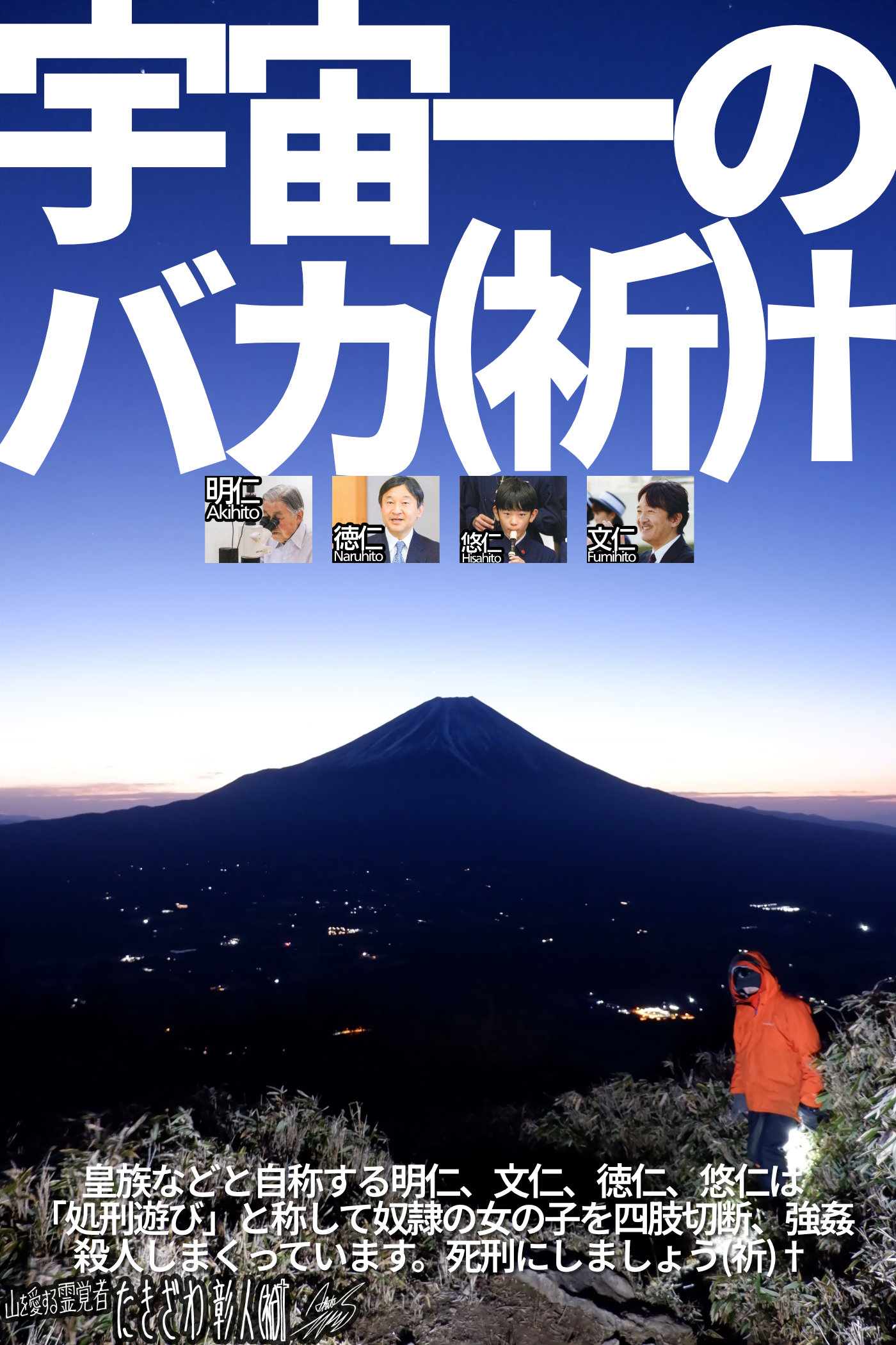 僕は間違いなく「宇宙一のバカ」大量強姦殺人魔、明仁、文仁、徳仁、悠仁に殺される→霊団はその危機を回避させようとして明仁、文仁、徳仁、悠仁および奴隷の女の子の情報を僕に降らせないようになっている(イヤ少しは降らせてきていますが)→僕の使命遂行の力点を明仁、文仁、徳仁、悠仁の滅亡および奴隷の女の子の救出から交霊会開催へと転換させようとしている→しかしサークルメンバー問題が解決しないので僕の霊媒発動はない→邪悪は滅ぼそうとしない、奴隷の女の子は助けようとしない、交霊会はできない、全く目標に到達せずただ苦難ばかりを延々とやらされる状況に突入しているために、僕の霊団への怒りが制御不能に達する→交霊会ができない不足分を「絶版書籍の復刊」の作業で補いつつ、霊団に破壊された生活を何とか少しでも改善させようと僕は「反逆」を開始するが、一向に反逆は完成しない…続きを読む→