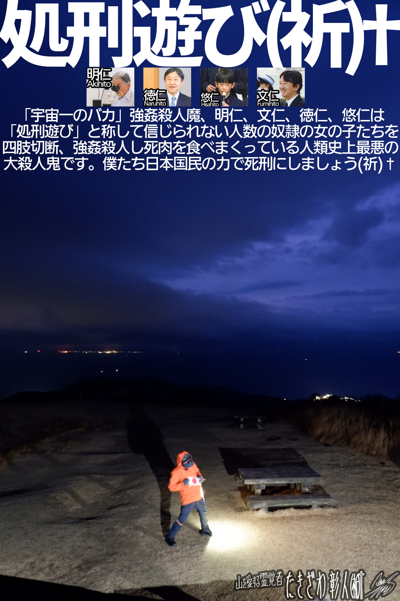 要するに「宇宙一のバカ」大量強姦殺人魔、明仁、文仁、徳仁、悠仁の滅亡に到達しかねないところまでオーバーステップしているという意味ももちろん含まれているでしょう。到達すればイイじゃネィか、それが目的で僕の霊的スイッチをONにしたんじゃネィのかよ。僕がどれだけ霊団の導きの方向性をイヤがっているか皆さまにご理解頂けるでしょうか。僕は反逆のペナルティで帰幽後にヒドイ状況に、イヤ物質界生活中の現在ですでにペナルティは発動しており、僕は徹底的に自分の心と正反対の状況に閉じ込められていますが、霊団は僕にはペナルティを課すが「宇宙一のバカ」大量強姦殺人魔、明仁、文仁、徳仁、悠仁には指1本触れようともしないこの宇宙最大級の理不尽。この状況を納得できる日はもう永遠に来ないでしょう。そんなに邪悪を守り通したいのか。地球圏霊界とは正しいおこないをする人間より邪悪の人間を守り通すというのか。ほぉー、これは何とも美しい世界だ、あこがれる、ぜひ住んでみたい。あー地球圏に生まれてよかったなぁ。正しいおこないをすればするほど苦しい状態にさせられ、邪悪なおこないをすればするほど守られる。本当に物質界なんて必要ネィんじゃネィのかと、かなり本気でそう思うに至っています…続きを読む→