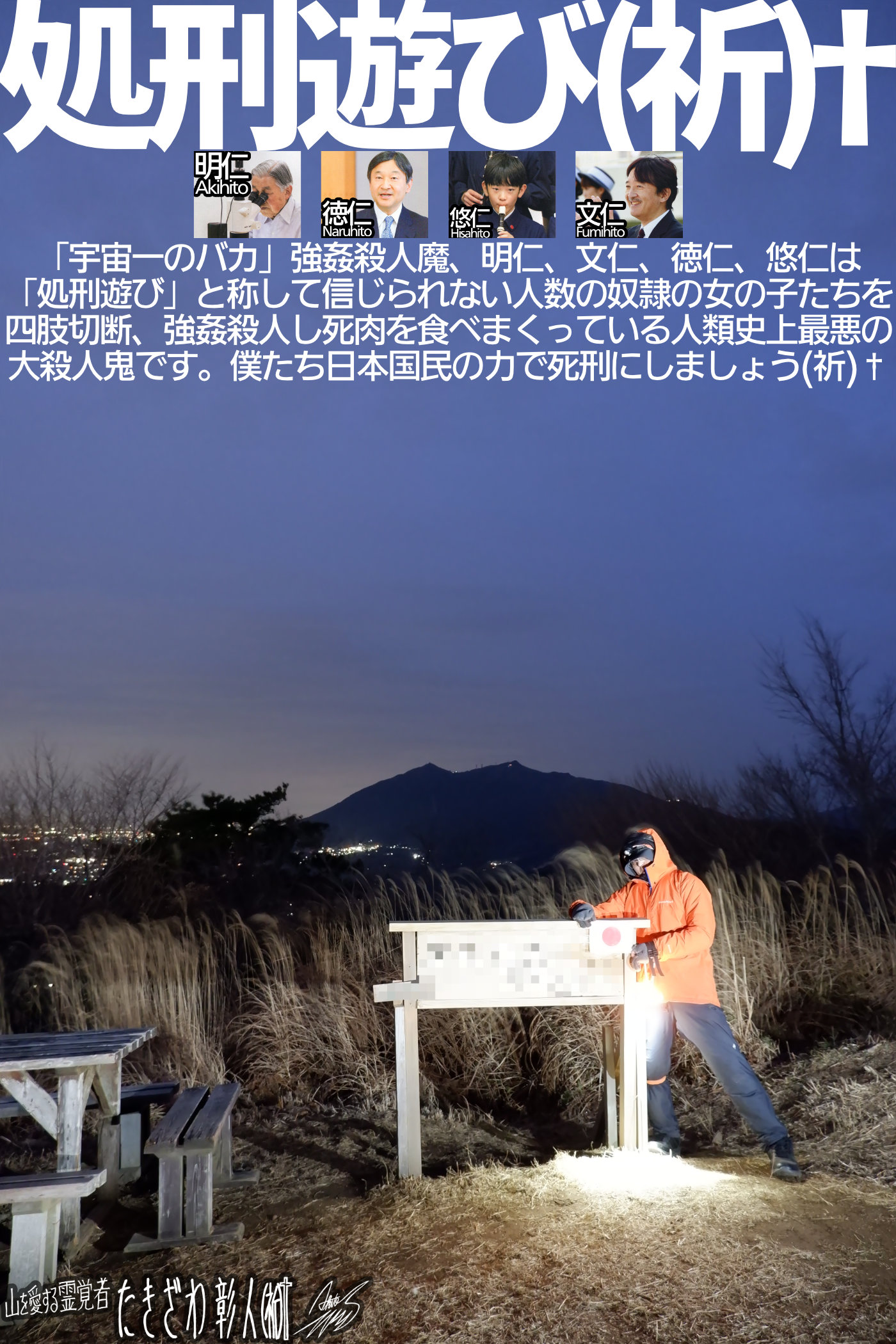 コレは「ペナルティの内容」という事でイイと思います。確かにこの数年、僕は脱出しようとしてありとあらゆるアクションを起こしてきましたが、成功確率0%、信じられない事に何ひとつ上手く行っていません。明らかに脅しと受け取れるインスピレーションを多数受け取り、泣く泣く脱出の試みを頓挫させられた事が何度あったか知れません。そこまでして閉じ込めてくるのが僕には異常と思えてならず「そのパワーを物質界の邪悪の滅亡に使えよ」と言いたくて仕方ありませんでした。使命遂行開始初期の頃、霊団は「宇宙一のバカ」大量強姦殺人魔、明仁、文仁、徳仁、悠仁の邪悪の正体を僕に果てしなく怒涛に教えてきて、ももちゃんを筆頭とした奴隷の女の子の存在も猛烈に教えてきました。僕はその導きに従って天皇一族の邪悪の正体を徹底的に情報拡散してきた訳ですが、あるところから霊団が全く正反対の行動をとり始めます。「宇宙一のバカ」大量強姦殺人魔、明仁、文仁、徳仁、悠仁を全く滅ぼすつもりがない、奴隷の女の子に関してはまるっきり助けるつもりがない、見殺しにするつもりであるとハッキリ言ってきて、僕は耳を疑う事になります…続きを読む→