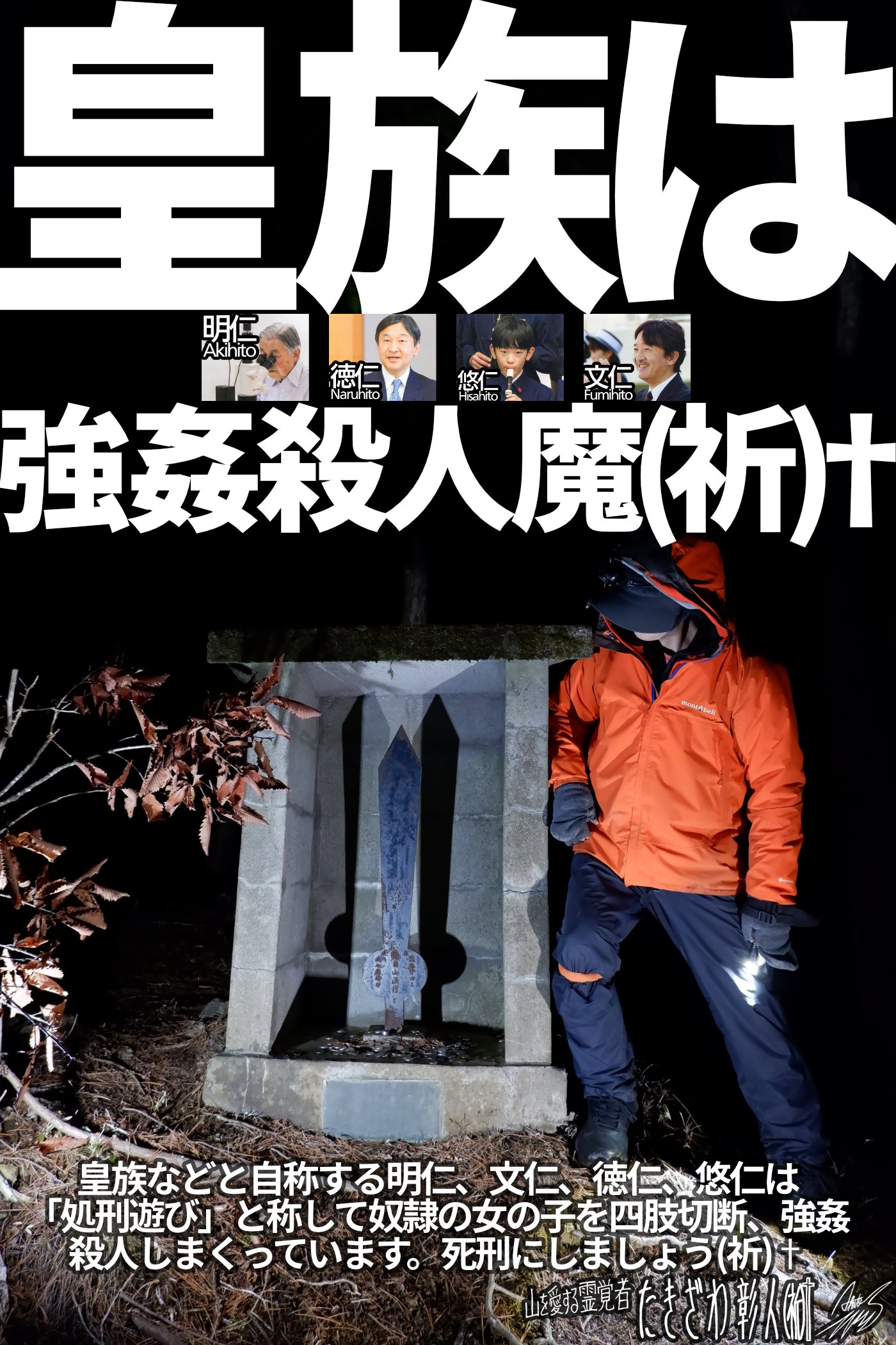 あのさぁ、根本的な部分を聞きたいんだけど、そもそもあんたたちは何がしたくて生きてるんですか。「宇宙一のバカ」大量強姦殺人魔、明仁、文仁、徳仁、悠仁の事は全く滅ぼそうともせずホッポラカシ、奴隷の女の子は見殺しにするとキッパリ言ってきている。